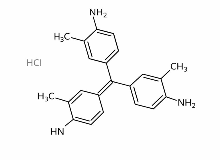 Schiff’s Reagent: Basic Violet 2 is employed in conjunction with Schiff’s reagent (in the periodic acid–Schiff process) for detecting aldehyde groups in tissue — useful in histology and pathology.
